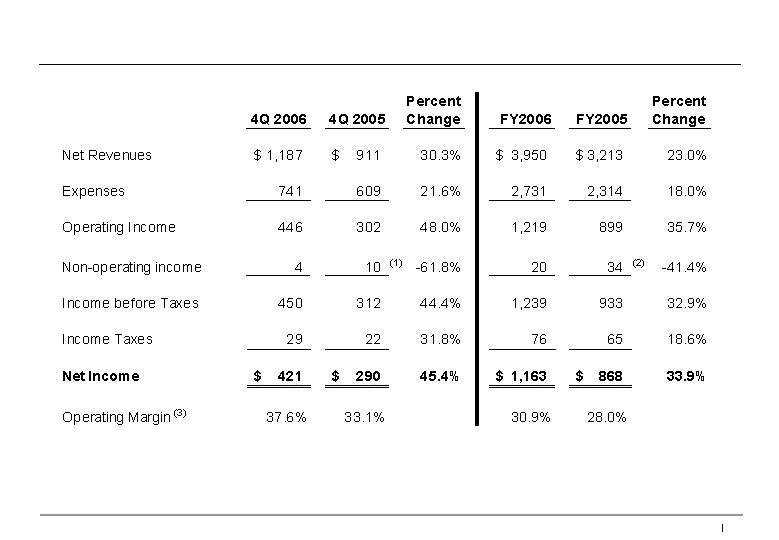 for the quarter ended December 31, 2006 was $1.48, an increase