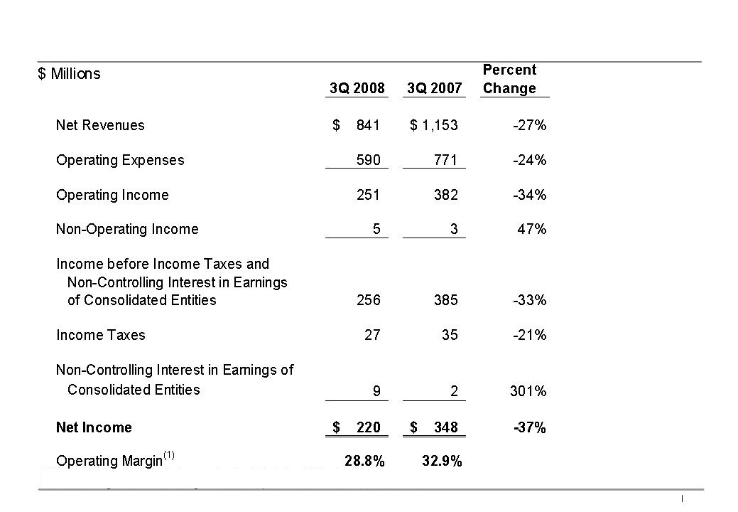 operating results for the quarter ended September 30, 2008.