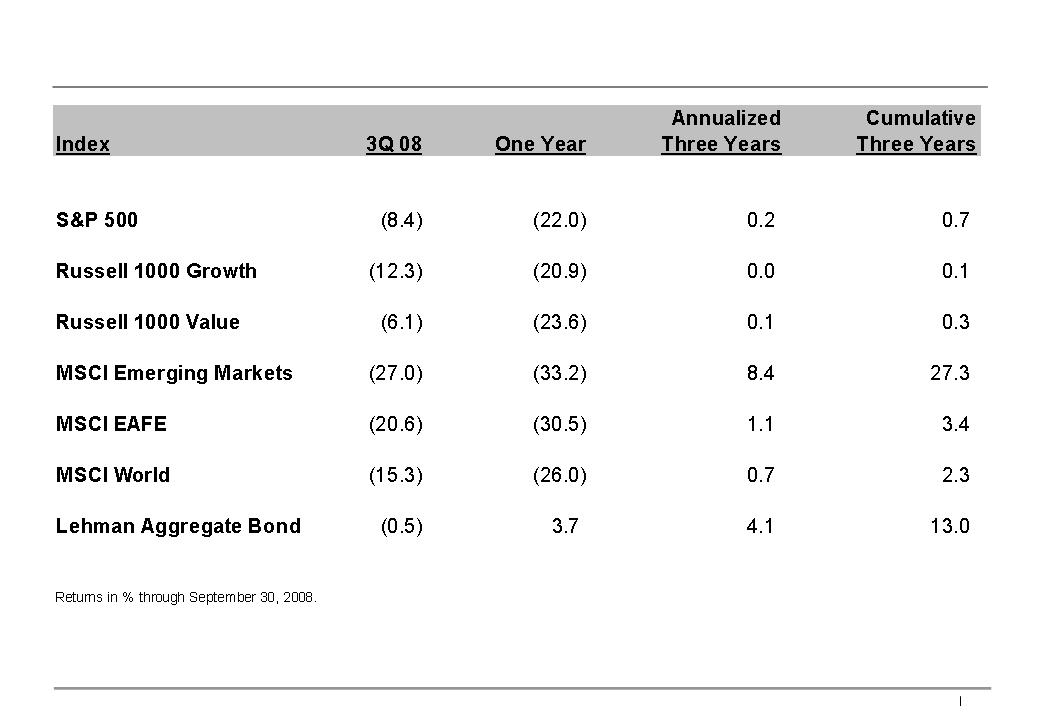 third quarter of 2008, exceptionally turbulent capital market conditions led to