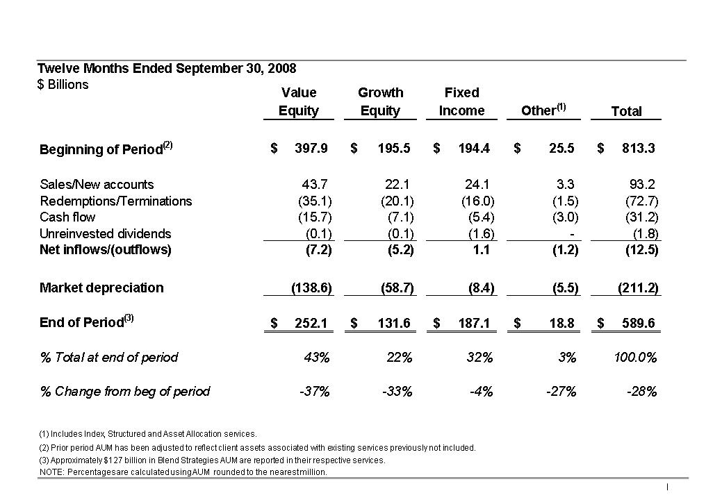(AUM) at September 30, 2008 were $590 billion, a 28% decrease from